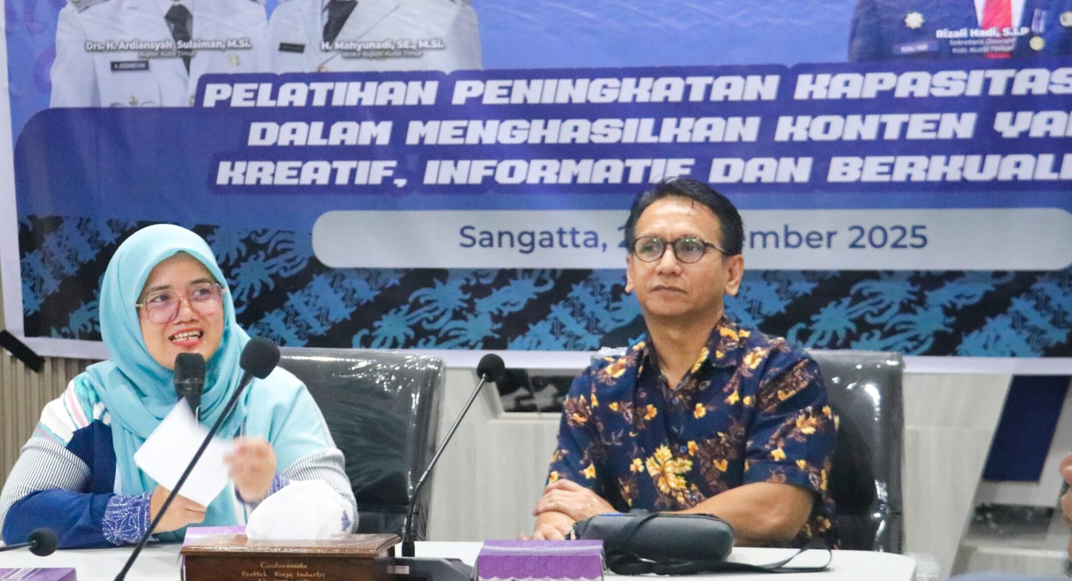 Pelatihan ini menghadirkan dua narasumber, yakni penggiat media sosial dan jurnalis dari PWI Kutim. Keduanya memberikan materi mulai dari strategi produksi konten, etika pemberitaan, hingga teknik verifikasi informasi.