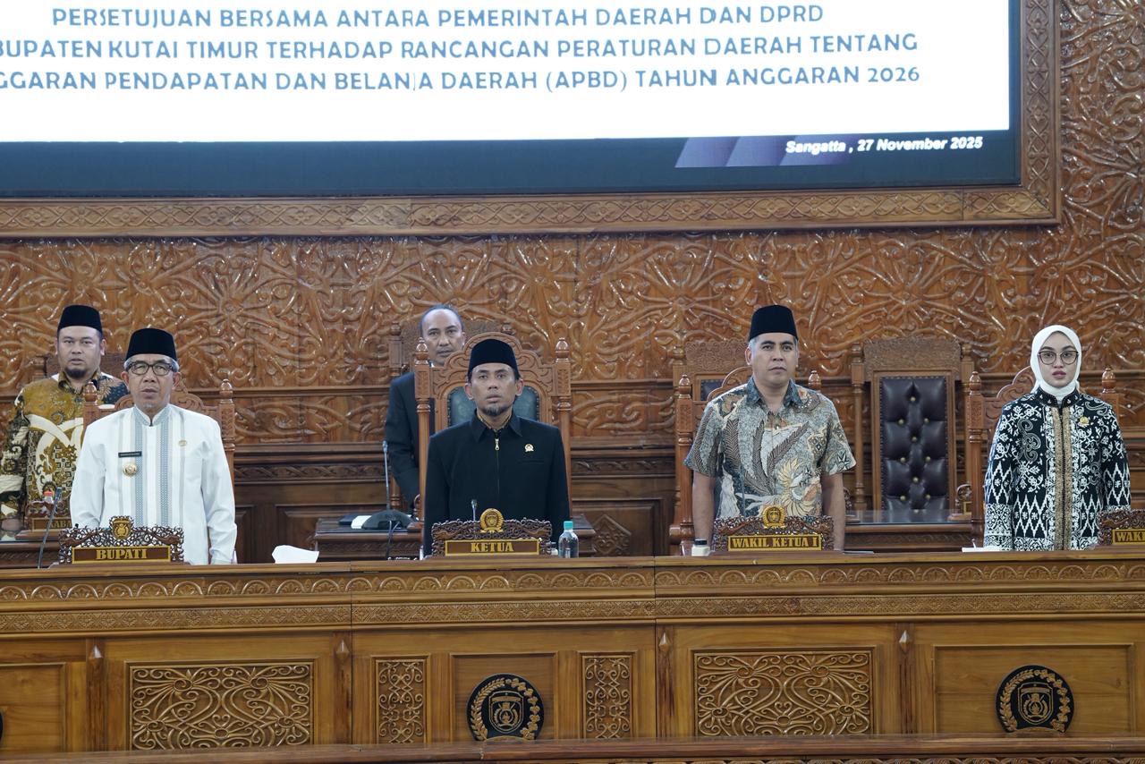 Kutipopini.comMelalui Rapat Paripurna ke-XV, Dewan Perwakilan Rakyat Daerah (DPRD) Kabupaten Kutai Timur (Kutim) bersama Pemerintah Kabupaten Kutim secara resmi menyepakati Rancangan Peraturan Daerah tentang Anggaran Pendapatan dan Belanja Daerah (APBD) Tahun Anggaran 2026.