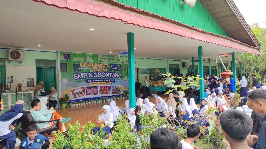 Kutipopini.com – Perayaan Hari Ulang Tahun (HUT) ke-25 SMP Negeri 3 Bontang, digelar meriah di pekarangan sekolah, Senin (24/11/2025), dengan mengusung tema Berkarya, Bersinar, dan Menginspirasi. Meski berlangsung sederhana, kreativitas para siswa menjadi pusat perhatian sepanjang acara.